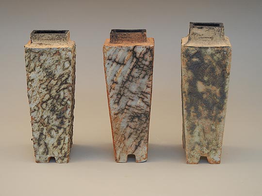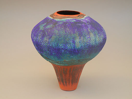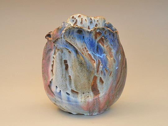 Using hand-building technics, I explored traditional pottery forms such as bowls, vases, plates, etc. Surface texture became an important consideration along with the use of multiple colour glazes. This enabled me to treat these forms as a canvas on which to employ the abstract, painterly qualities of the glaze application.
